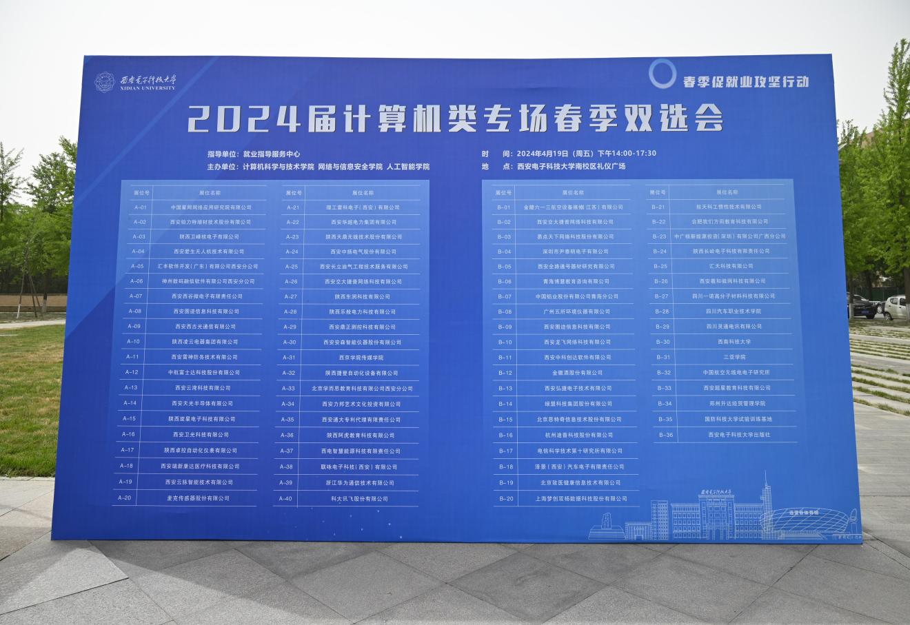 (通讯员 邢智琪)为落实教育部春季促就业攻坚行动,促进计算机大类毕业生高质量充分就业,4月19日,西安电子科技大学2024届计算机类专场春季双选会在南校区礼仪广场举办。电信科学技术第十研究所、国防科技大学、科大讯飞、汇丰软件等77家用人单位来校招才引智,吸引了800余名毕业生参与,现场投递简历2000余份。本次双选会在就业指导服务中心指导下,由计算机科学与技术学院、网络与信息安全学院、人工智能学院联合主办。