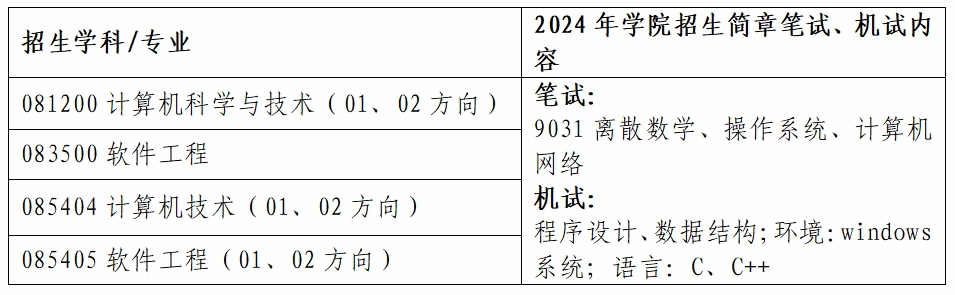 专业知识考核范围为2024年学院招生简章上复试笔试和机试相关内容:
