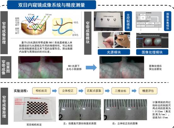 所研发的口腔咽喉狭小空间双目内窥镜成像与导航定位系统,可实现精度为毫米级的手术钳精确定位和病灶分割,支持面向病灶的导航服务,突破了狭小空间特征提取难、匹配难等基础关键问题,该成果已在手术机器人精细化导引、病灶三维分割等上面开展示范应用。